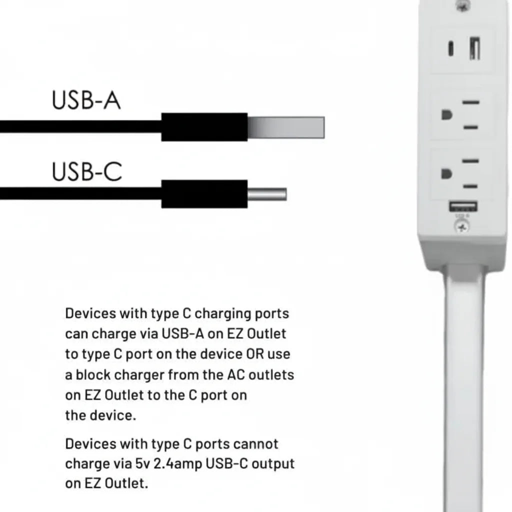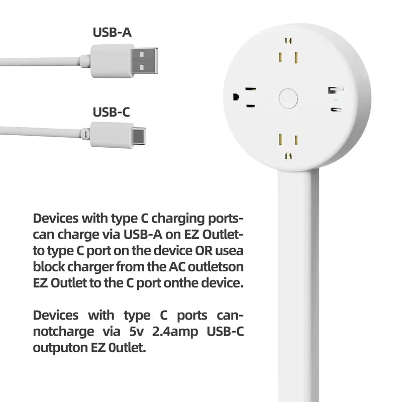 Stop battling with bulky chargers and blocked outlets. Our 180° rotating extender opens up every port, giving you multiple AC, USB-A, and USB-C connections in one sleek design. Finally, charge all your devices without the clutter.